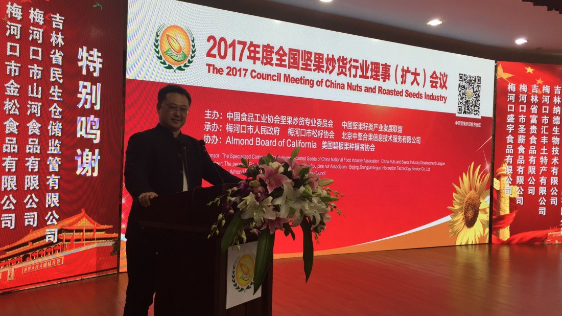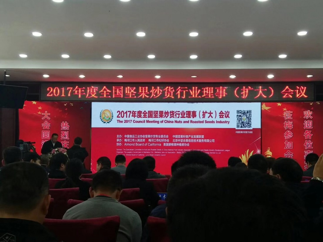 由中國食品工業(yè)協(xié)會堅果炒貨專業(yè)委員會主辦的“2017年度全國堅果炒貨行業(yè)理事會(擴大)會議”,于2017年10月23日—25日在吉林梅河口市召開。出席此次會議的代表有:協(xié)會執(zhí)行會長、副會長、全體理事單位;梅河口市政府、廣西龍州縣政府、云南臨滄縣政府有關部門領導以及吉林省有關市縣的領導;出席的有關部門還有國家食藥監(jiān)總局三司、吉林省食品安全質量檢驗檢測所,以及美國、俄羅斯、越南、巴基斯坦等國家堅果協(xié)會、企業(yè)代表,共計500余人參加了會議。