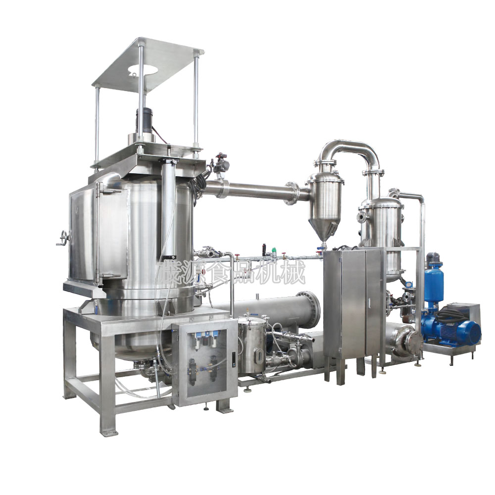 在真空(負(fù)壓)的狀態(tài)下,食品中的水分汽化溫度降低,真空低溫脫水機(jī)以食用植物油作為傳熱媒介,使食品中的水分急劇蒸發(fā)而噴出,從而實(shí)現(xiàn)低溫條件下對食品的油炸。